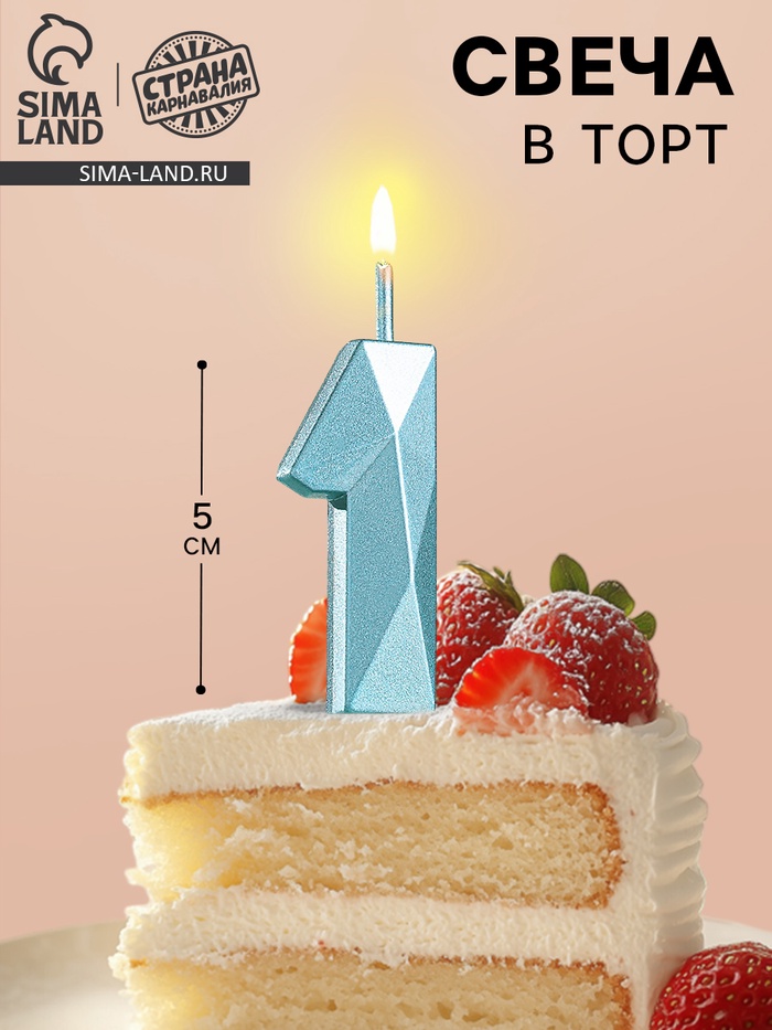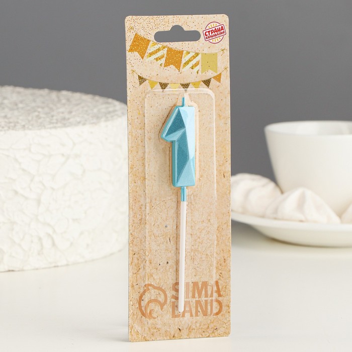 Свеча в торт на шпажке «Алмаз», цифра 1, голубая, 5 см