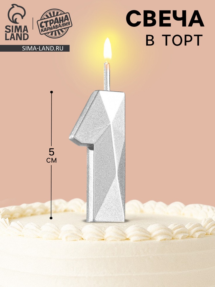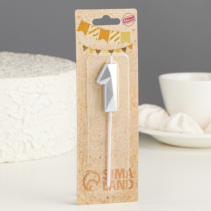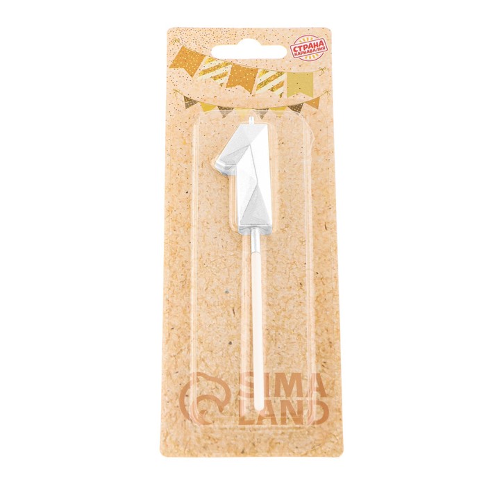 Свеча в торт на шпажке «Алмаз», цифра 1, серебряная, 5×2.6 см