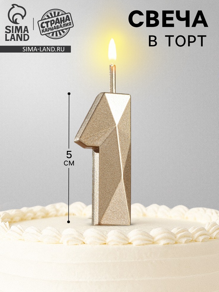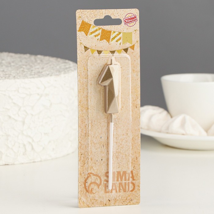 Свеча в торт на шпажке «Алмаз», цифра 1, шампань, 5×2.6 см