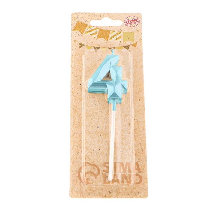 Свеча в торт на шпажке «Алмаз», цифра 4, голубая, 5 см