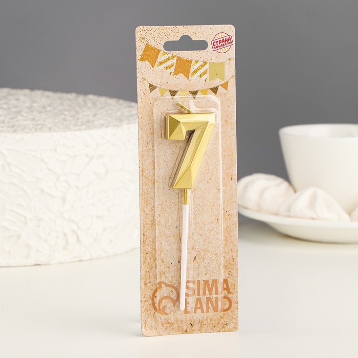Свеча в торт на шпажке «Алмаз», цифра 7, золотая, 5 см