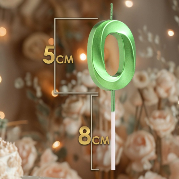 Свеча в торт на шпажке «‎Цифра 0», зеленая, 5 см