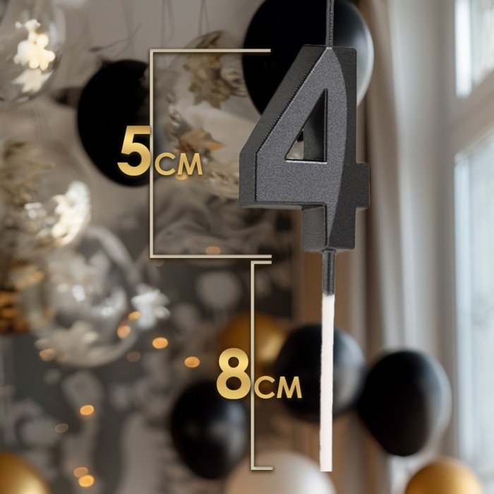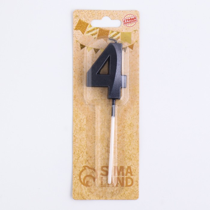 Свеча в торт на шпажке «Цифра 4», черная, 5 см
