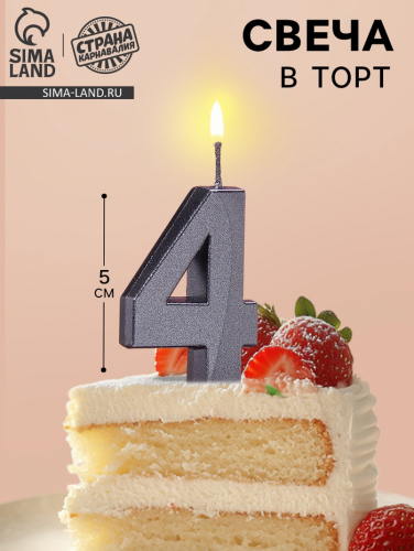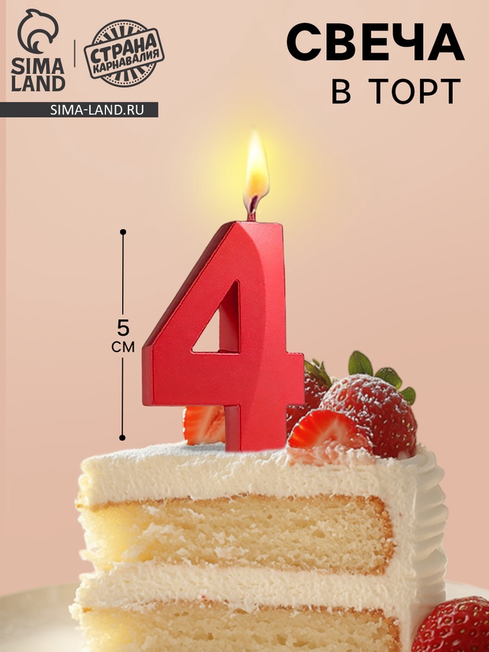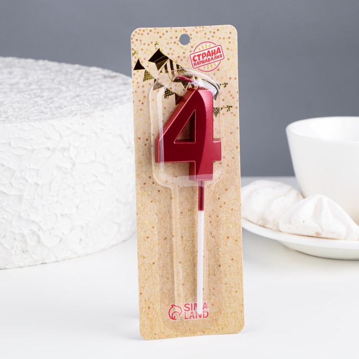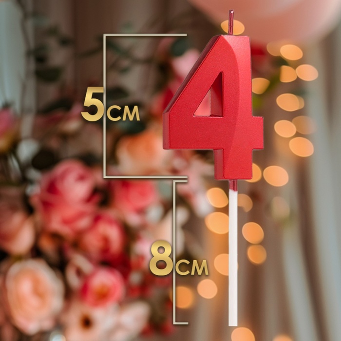 Свеча в торт на шпажке «Цифра 4», красная, 5 см