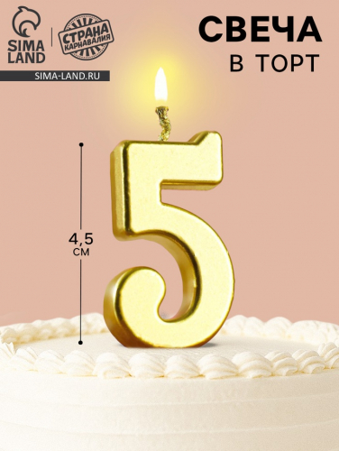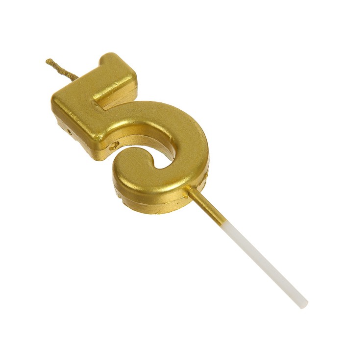 Свеча в торт на шпажке «Цифра 5», золотая, 4.5×2.5 см