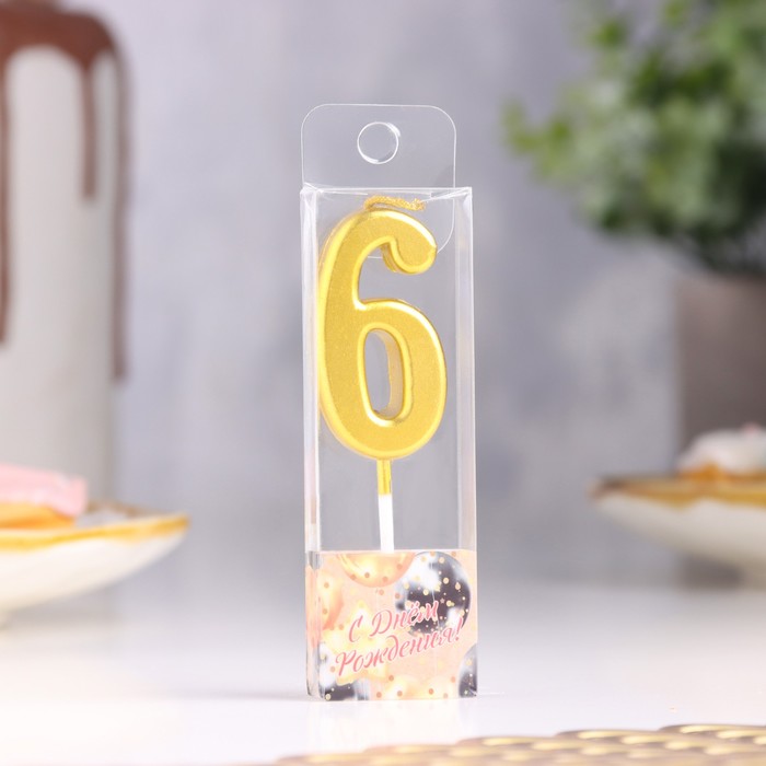 Свеча в торт на шпажке «Цифра 6», золотая, 4.5×2.5 см