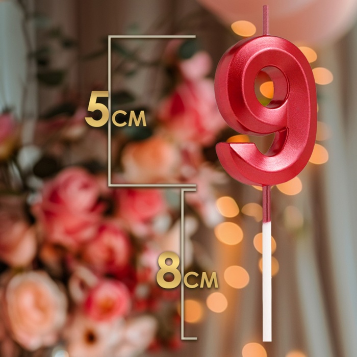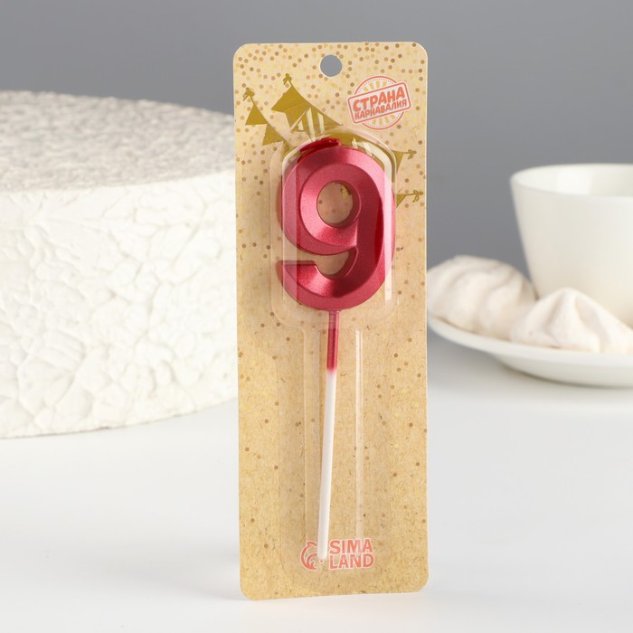 Свеча в торт на шпажке «Цифра 9», красная, 5 см