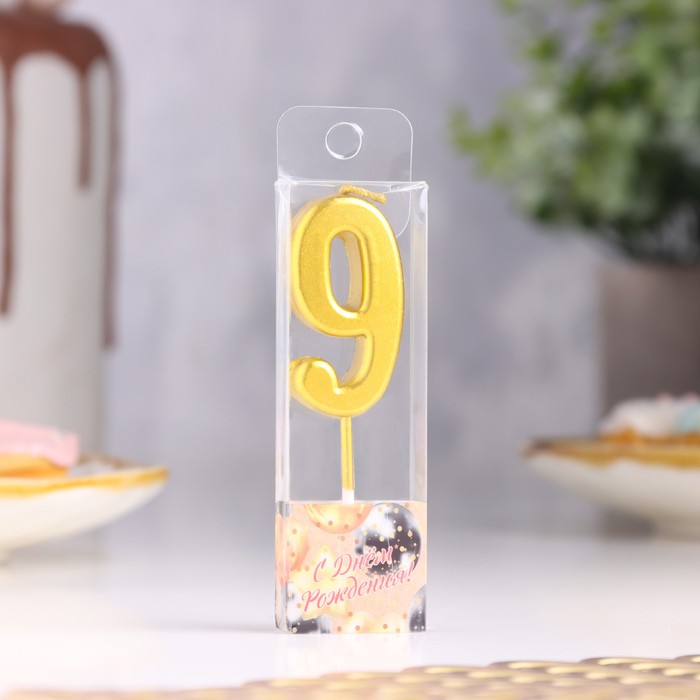Свеча в торт на шпажке «Цифра 9», золотая, 4.5×2.5 см