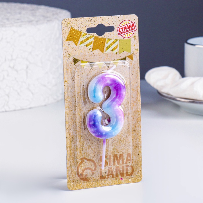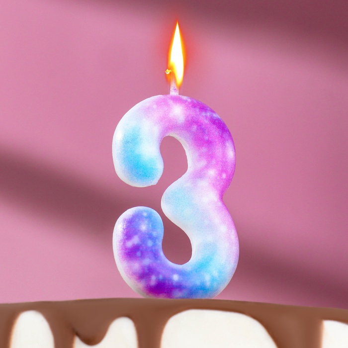 Свеча в торт на шпажке «Галактика», цифра 3, 5.5 см
