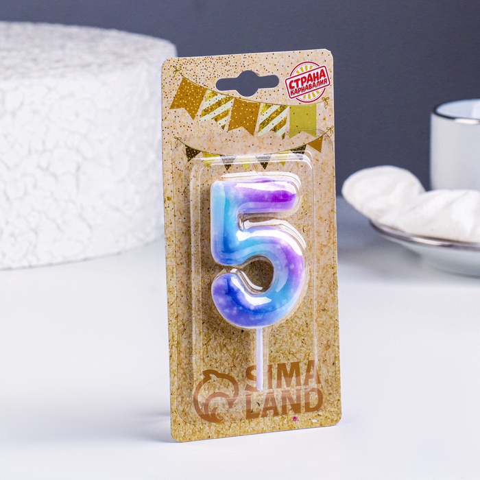 Свеча в торт на шпажке «Галактика», цифра 5, 5.5 см