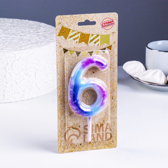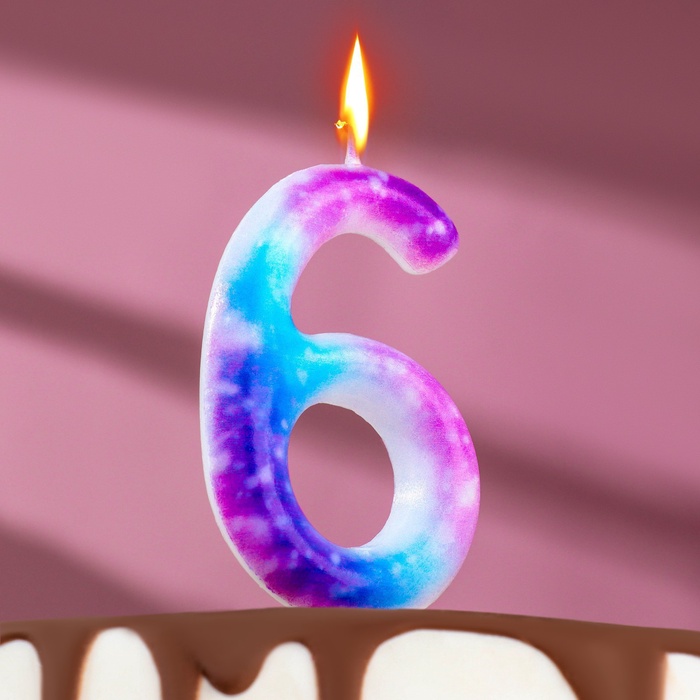 Свеча в торт на шпажке «Галактика», цифра 6, 9 см, ГИГАНТ