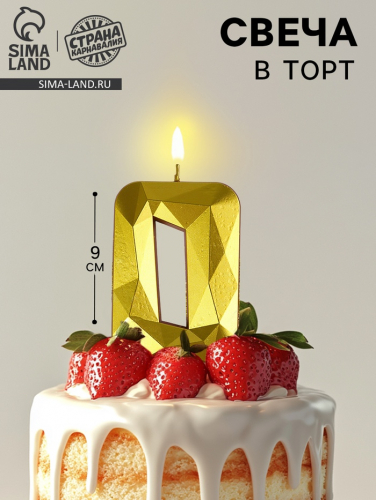 Свеча в торт на шпажке «Грань», цифра 0, золотая, 9 см, ГИГАНТ