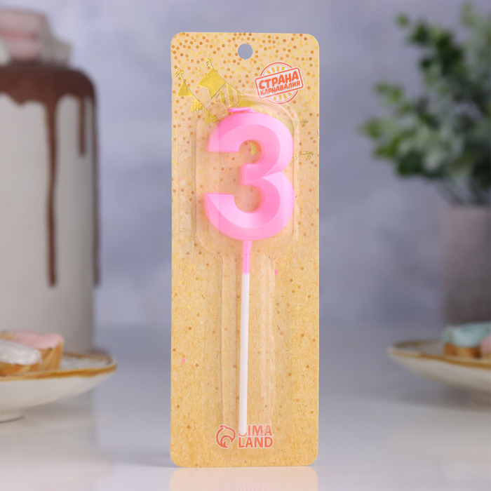 Свеча в торт на шпажке «Грань», цифра 3, 5 см, розовая