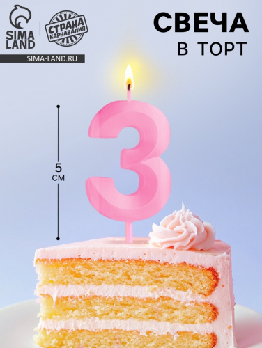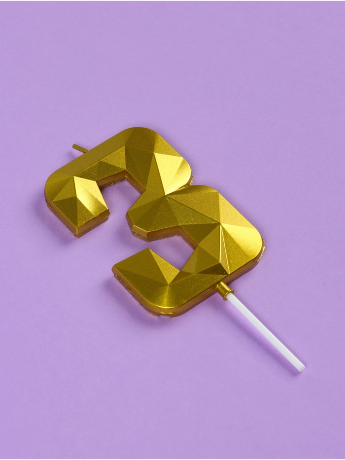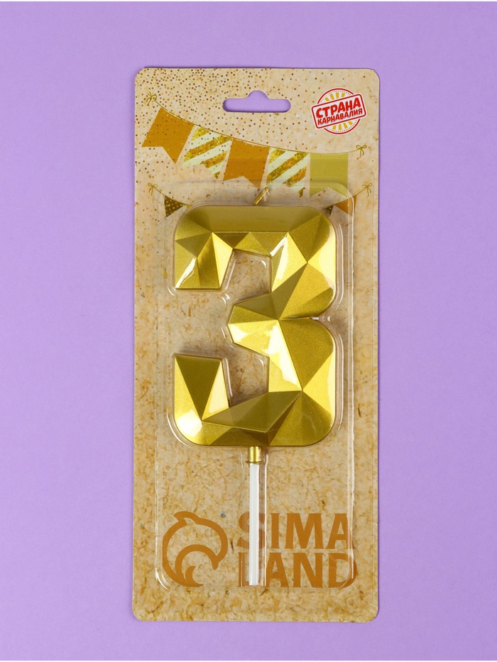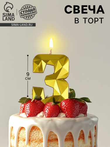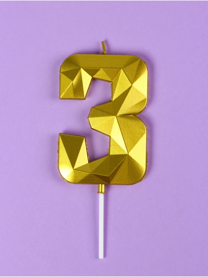 Свеча в торт на шпажке «Грань», цифра 3, золотая, 9 см, ГИГАНТ