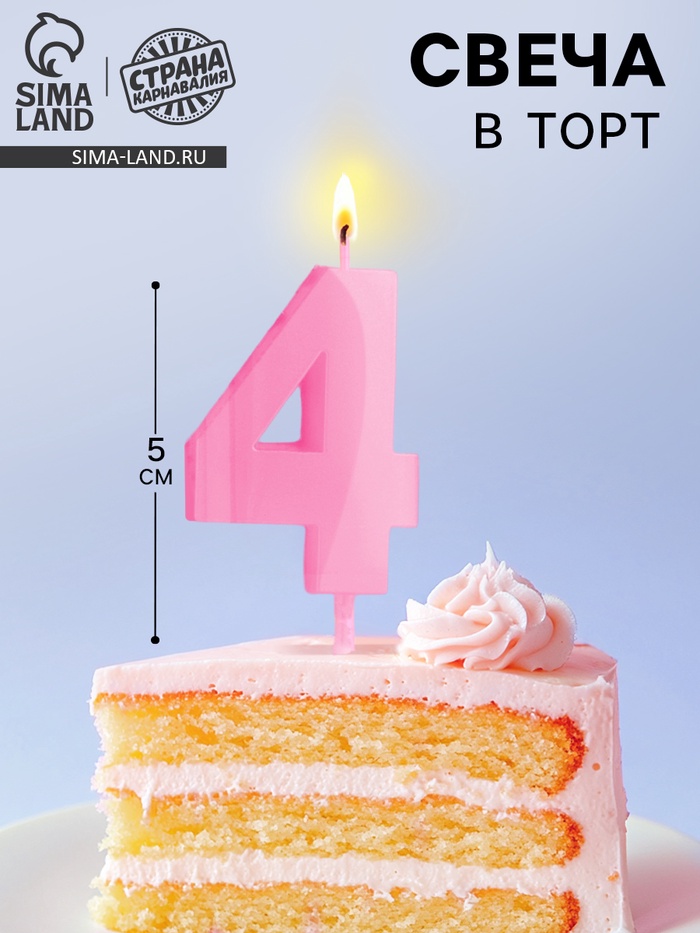 Свеча в торт на шпажке «Грань», цифра 4, 5 см, розовая