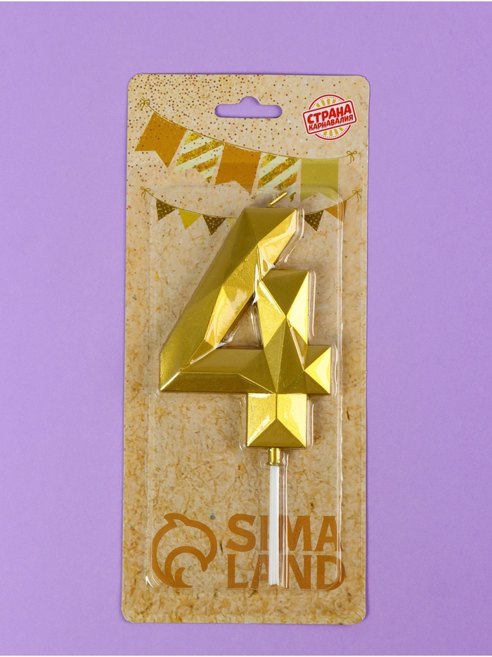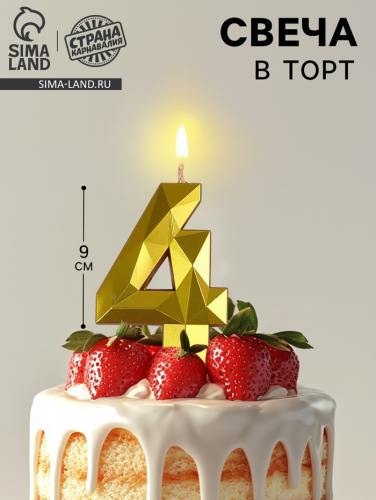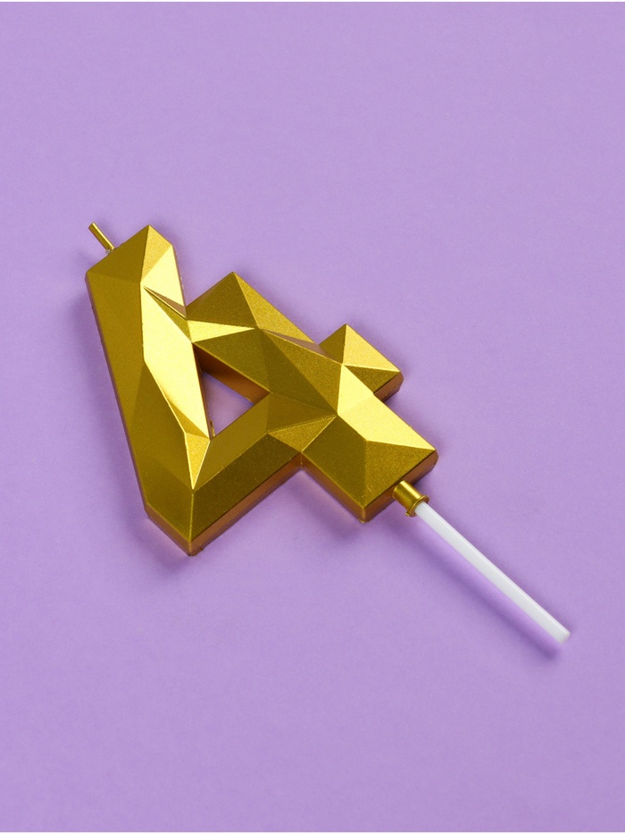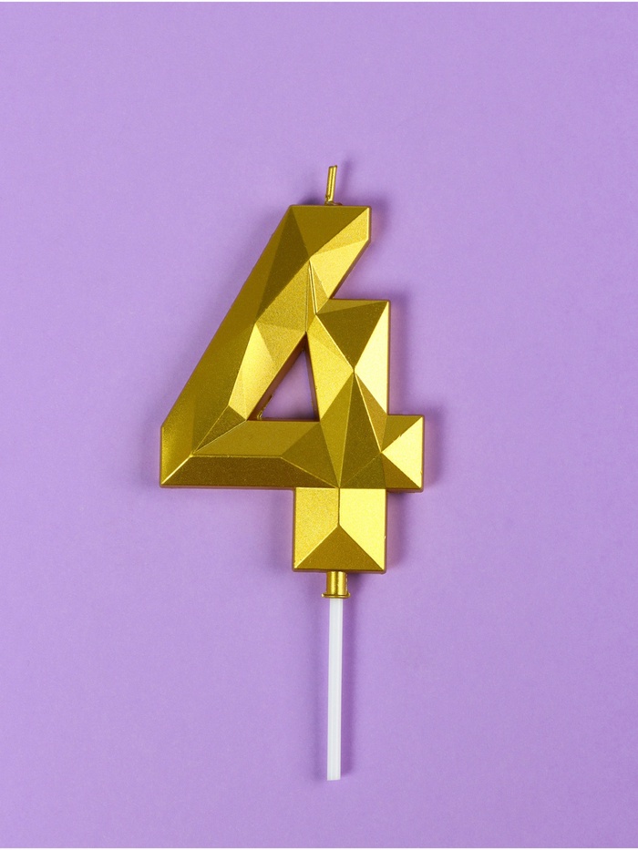 Свеча в торт на шпажке «Грань», цифра 4, золотая, 9 см, ГИГАНТ