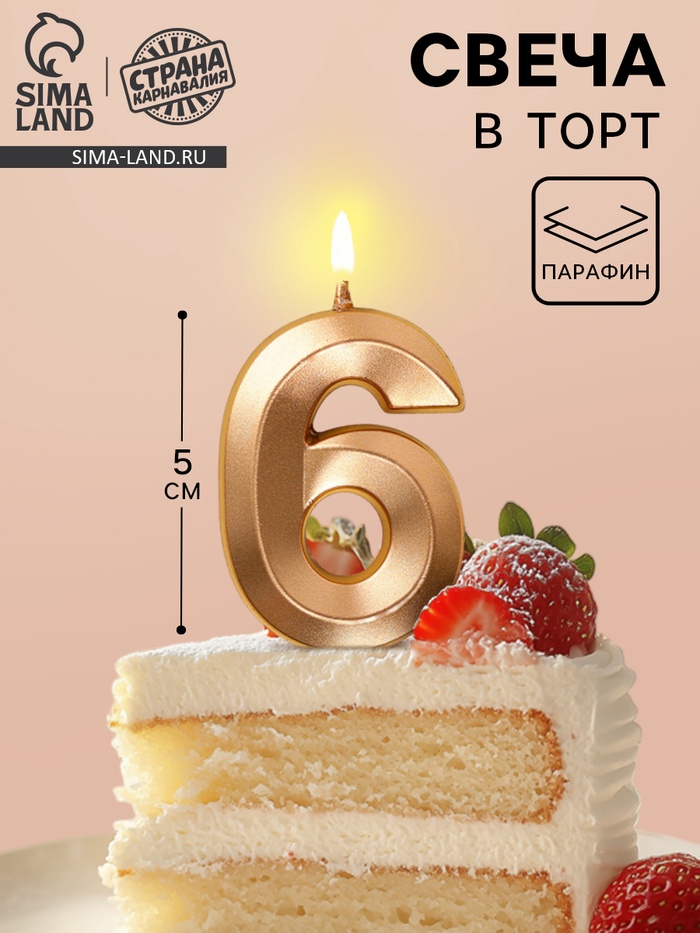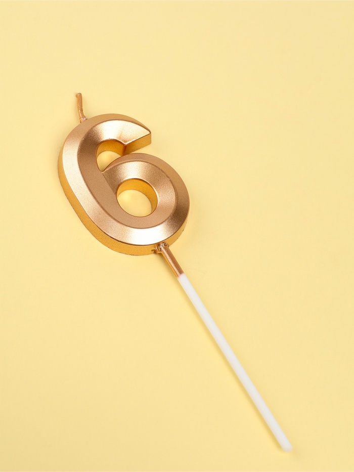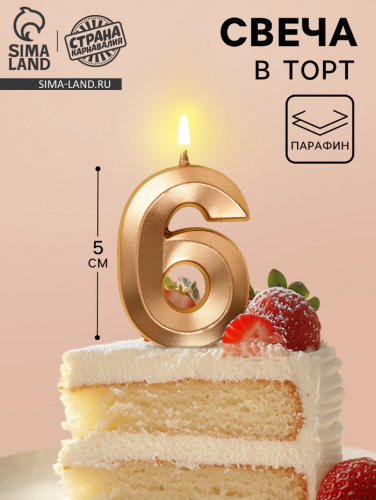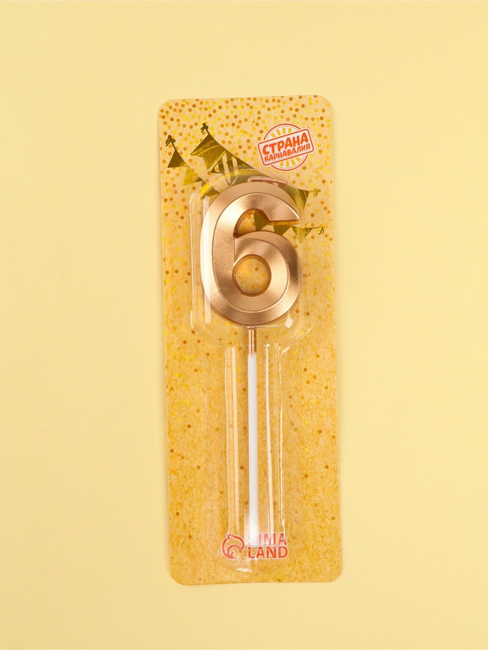 Свеча в торт на шпажке «Грань», цифра 6, шампань, 5 см