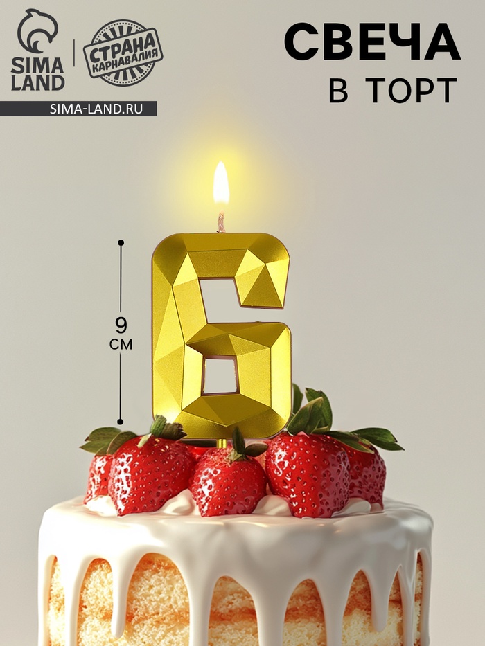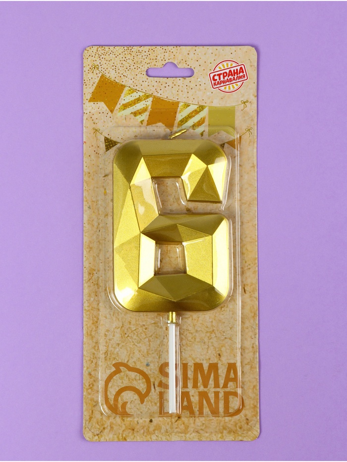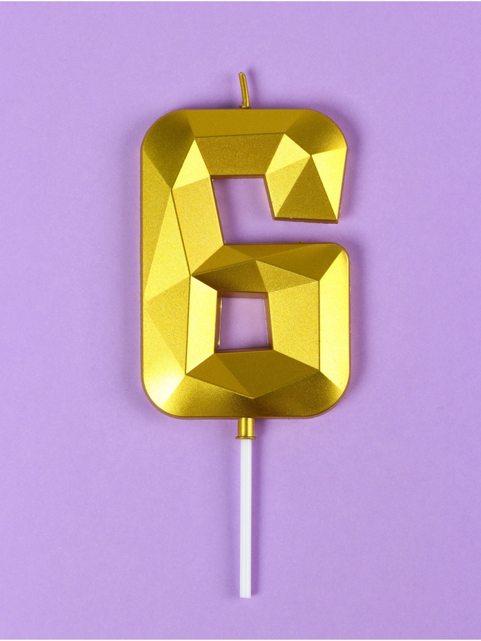 Свеча в торт на шпажке «Грань», цифра 6, золотая, 9 см, ГИГАНТ