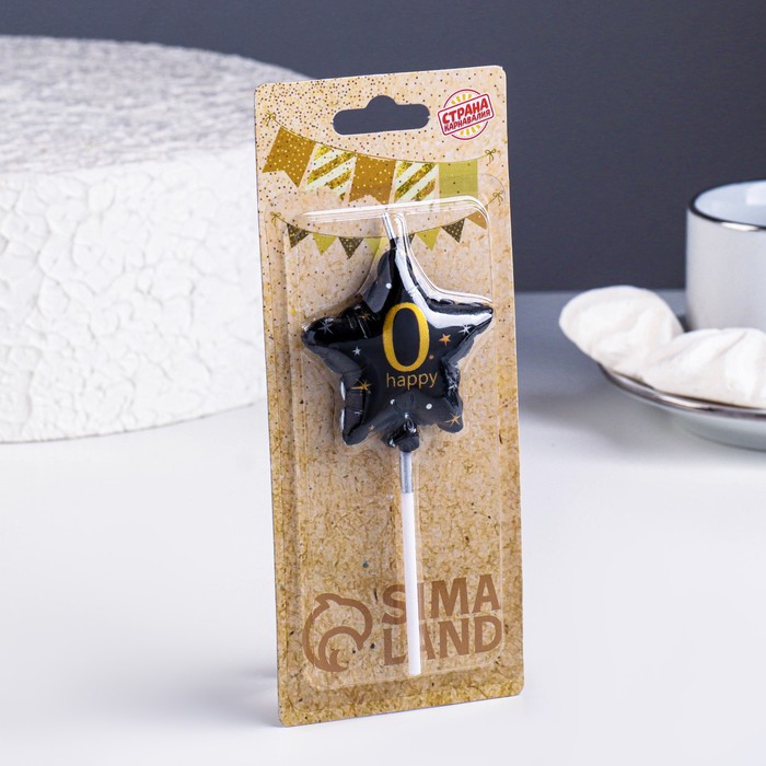 Свеча в торт на шпажке «Воздушный шарик.Звезда», цифра 0, 5.5 см, черная с золотом