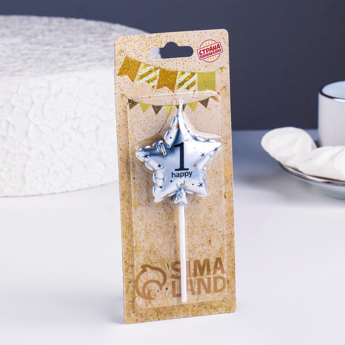 Свеча в торт на шпажке «Воздушный шарик.Звезда», цифра 1, 5.5 см, серебряная