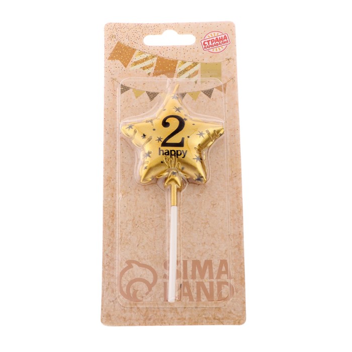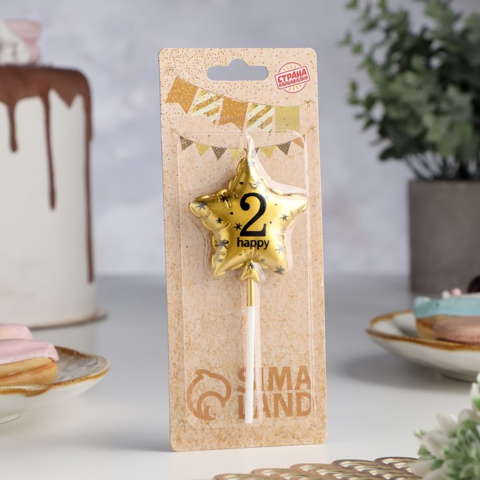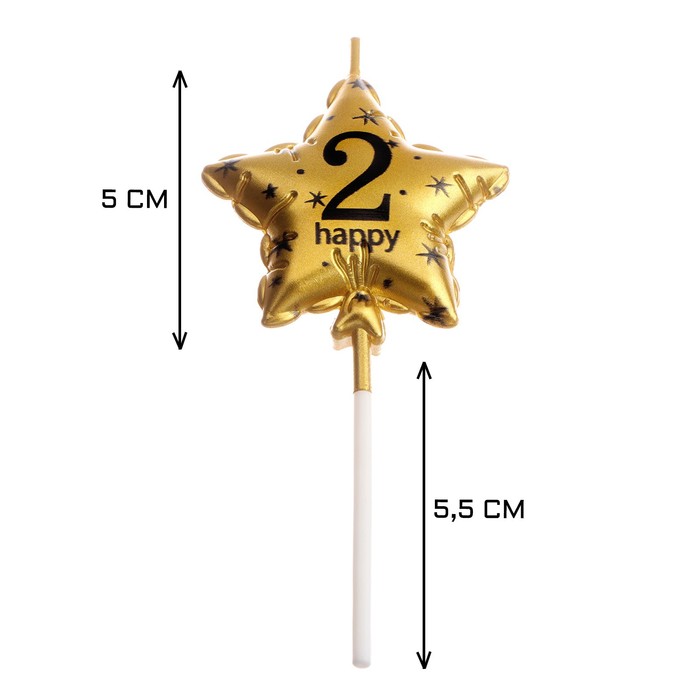Свеча в торт на шпажке «Воздушный шарик.Звезда», цифра 2, 5.5 см, золотая