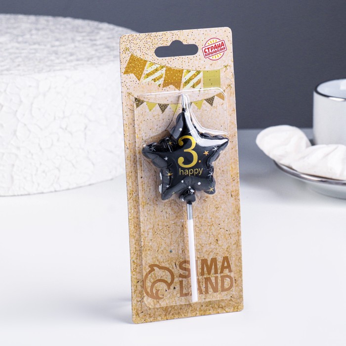 Свеча в торт на шпажке «Воздушный шарик.Звезда», цифра 3, 5.5 см, черная с золотом