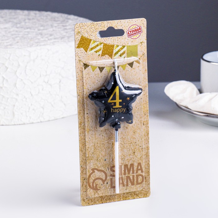 Свеча в торт на шпажке «Воздушный шарик.Звезда», цифра 4, 5.5 см, черная с золотом