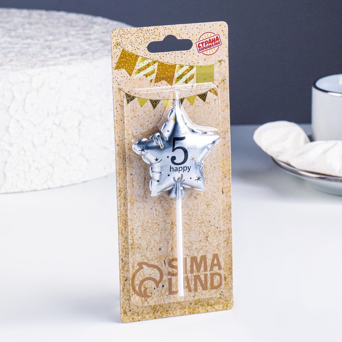 Свеча в торт на шпажке «Воздушный шарик.Звезда», цифра 5, 5.5 см, серебряная