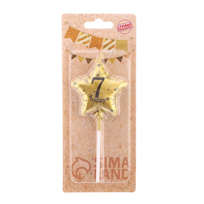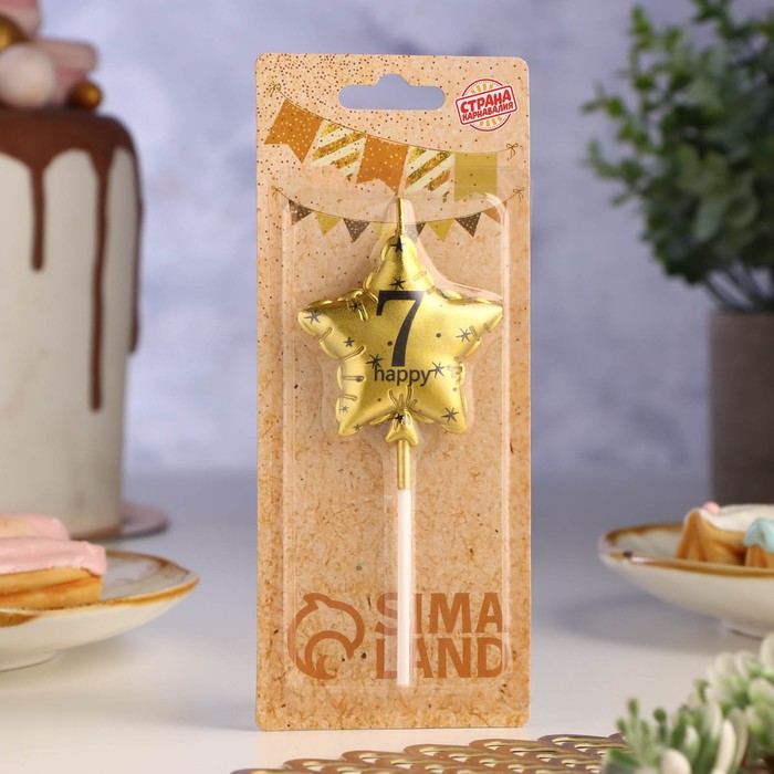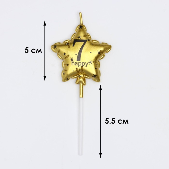 Свеча в торт на шпажке «Воздушный шарик.Звезда», цифра 7, 11×5 см, золотая
