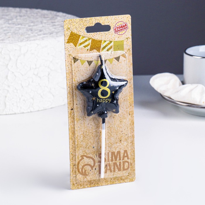Свеча в торт на шпажке «Воздушный шарик.Звезда», цифра 8, 5.5 см, черная с золотом