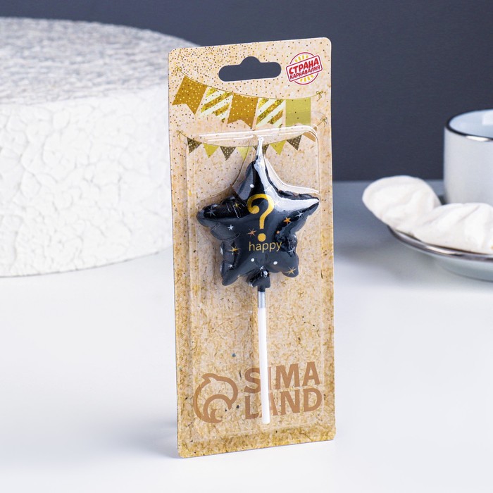 Свеча в торт на шпажке «Воздушный шарик.Звезда», знак вопроса,5.5 см, черная с золотом