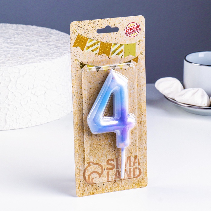 Свеча в торт на шпажке «Звездопад», цифра 4, 9 см, ГИГАНТ