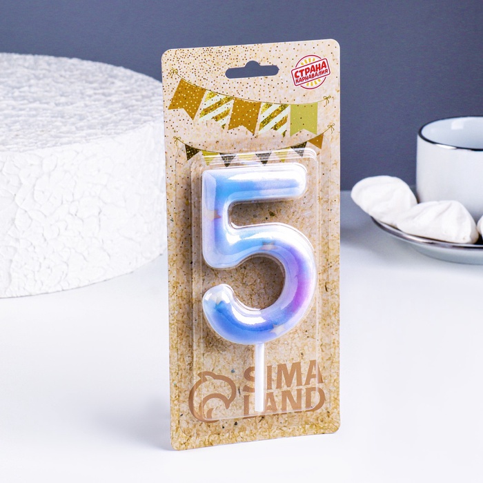Свеча в торт на шпажке «Звездопад», цифра 5, 9 см, ГИГАНТ