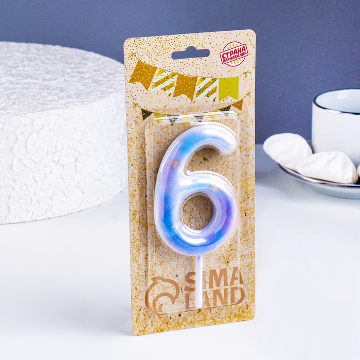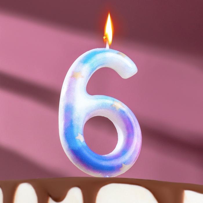 Свеча в торт на шпажке «Звездопад», цифра 6, 9 см, ГИГАНТ