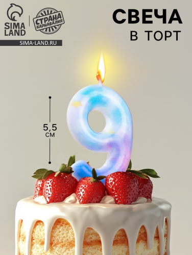 Свеча в торт на шпажке «Звездопад», цифра 9, 9 см, ГИГАНТ