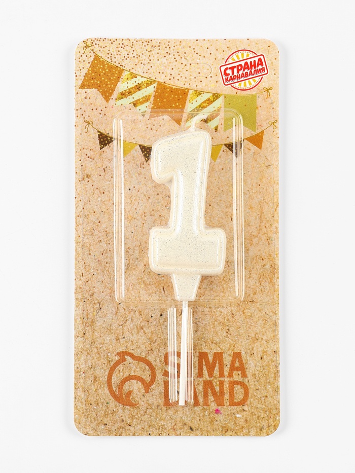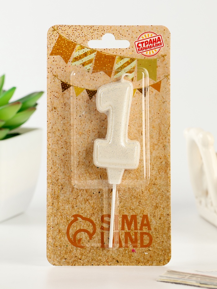 Свеча в торт «Праздник» цифра 1, жемчужный перламутр с блестками