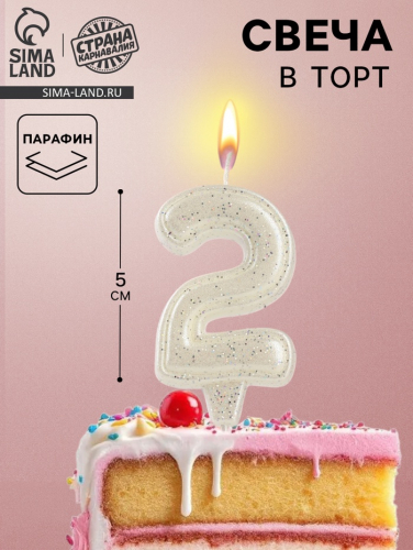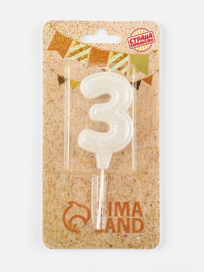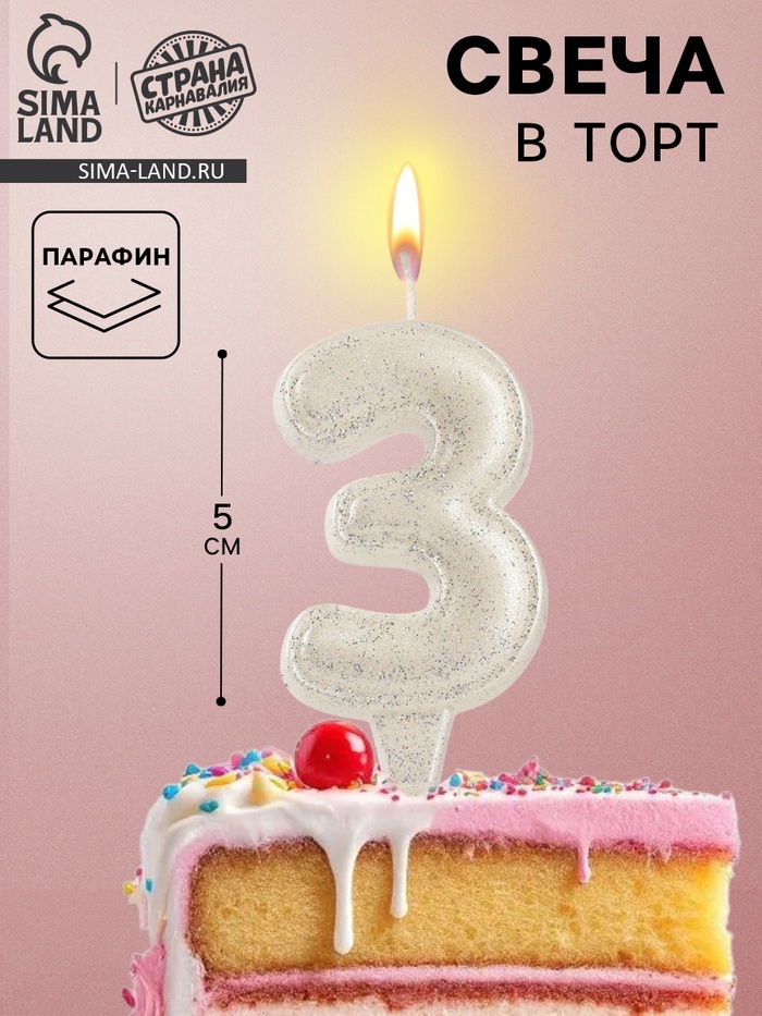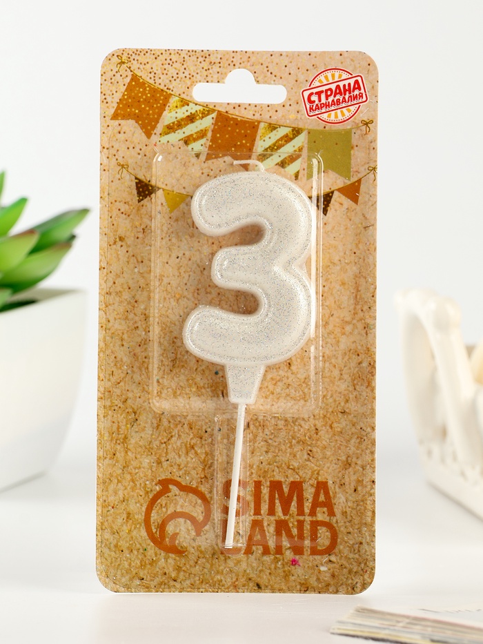 Свеча в торт «Праздник» цифра 3, жемчужный перламутр с блестками