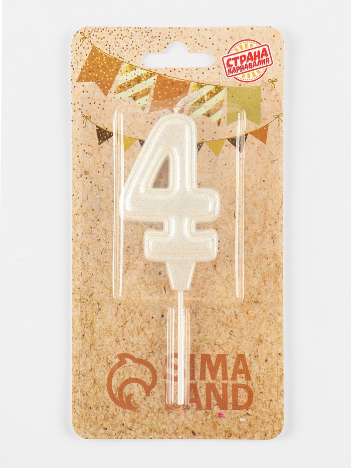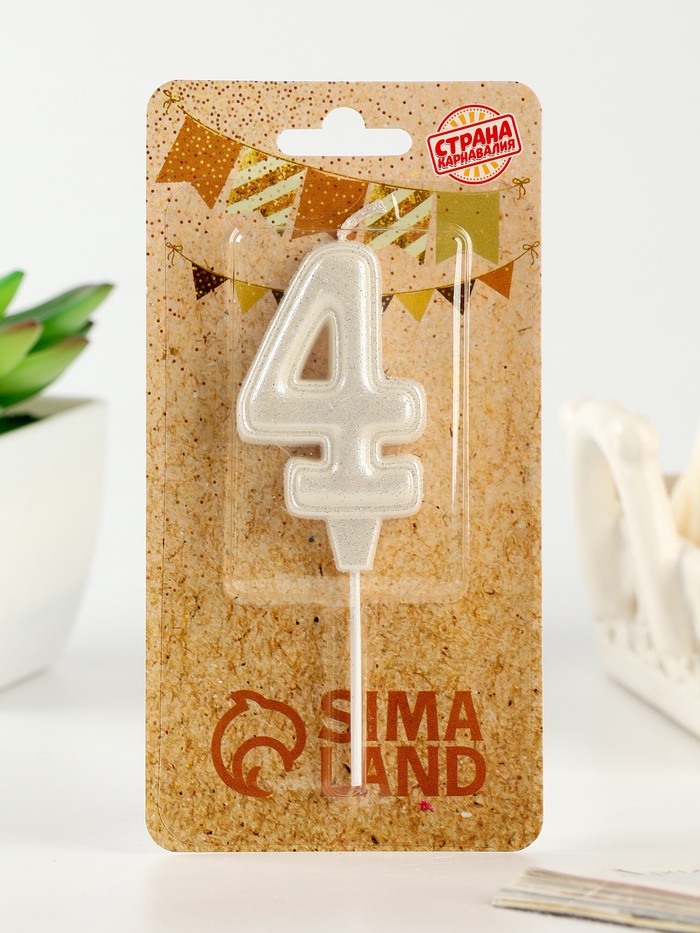 Свеча в торт «Праздник» цифра 4, жемчужный перламутр с блестками
