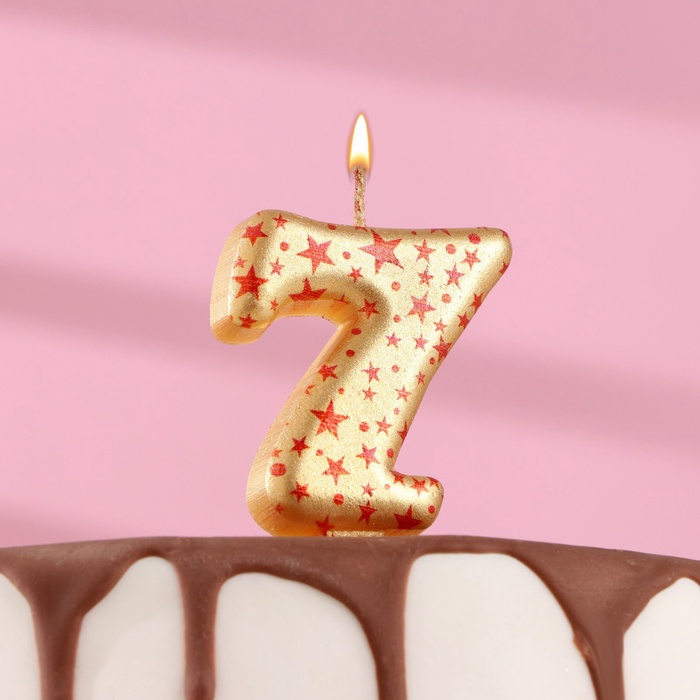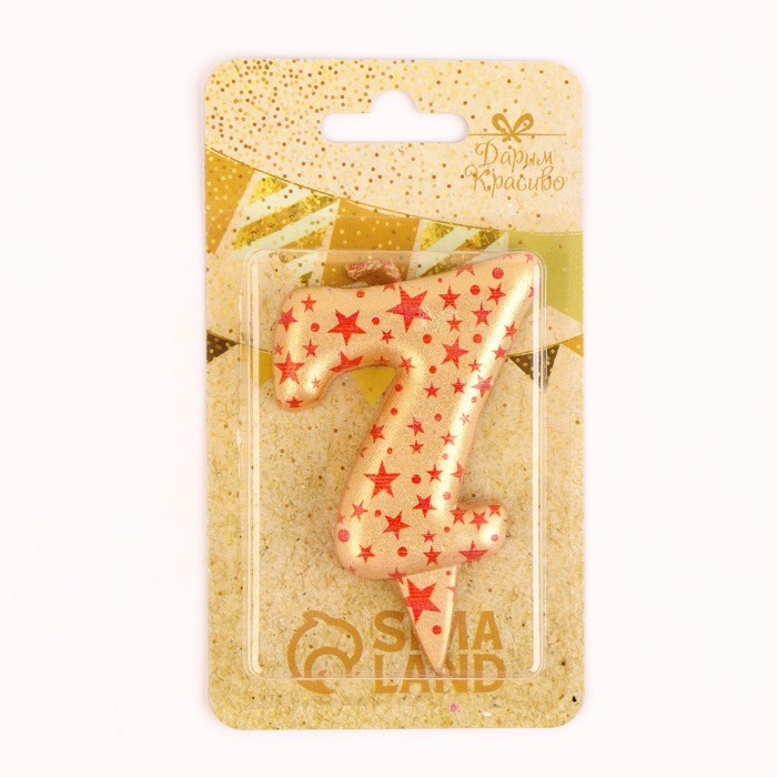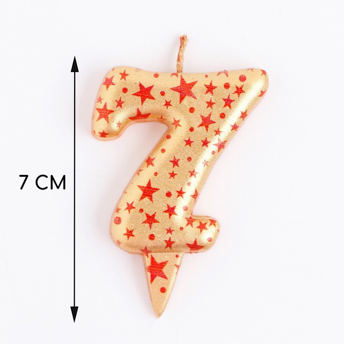 Свеча в торт «Саната», цифра 7, золотая с красными звездами, 5.5 см