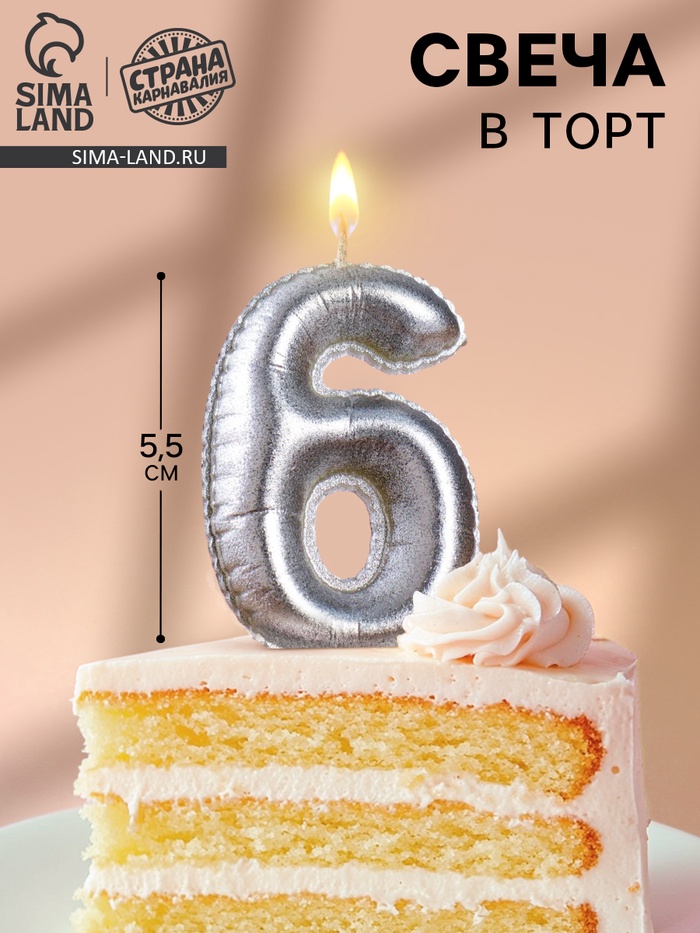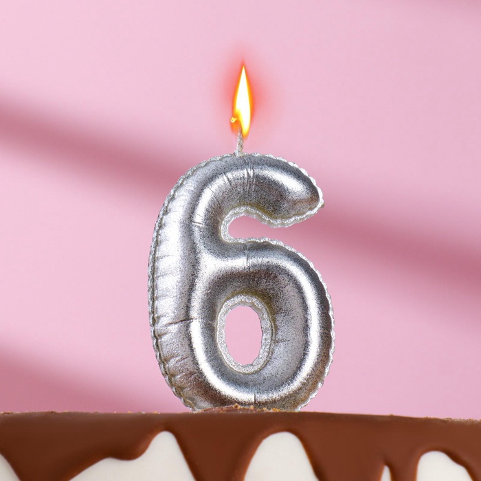 Свеча в торт «Шары», цифра 6, серебро, 5.5 см