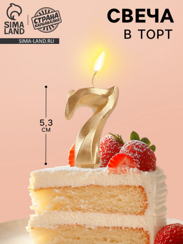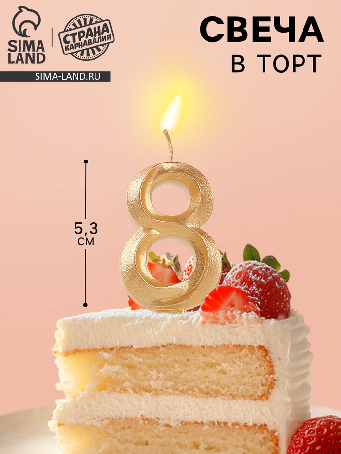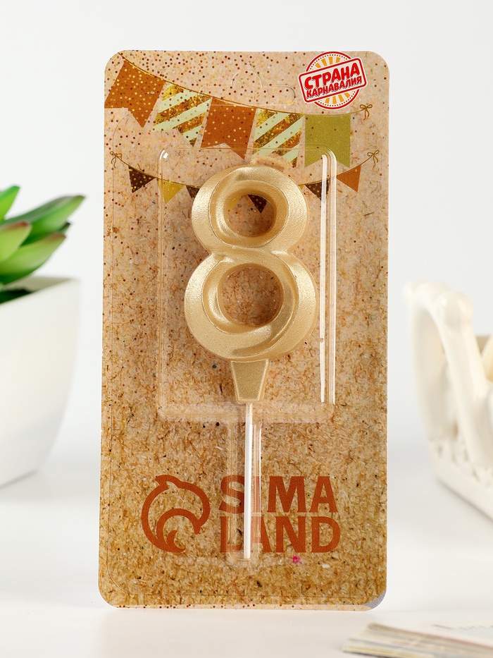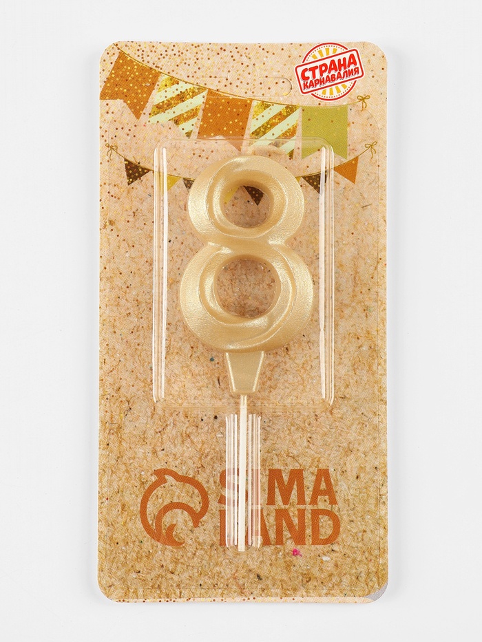Свеча в торт «Театральная», цифра 8, золотой металлик