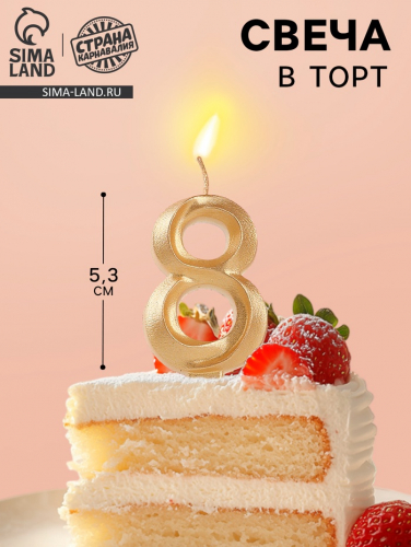 Свеча в торт «Театральная», цифра 9, золотой металлик