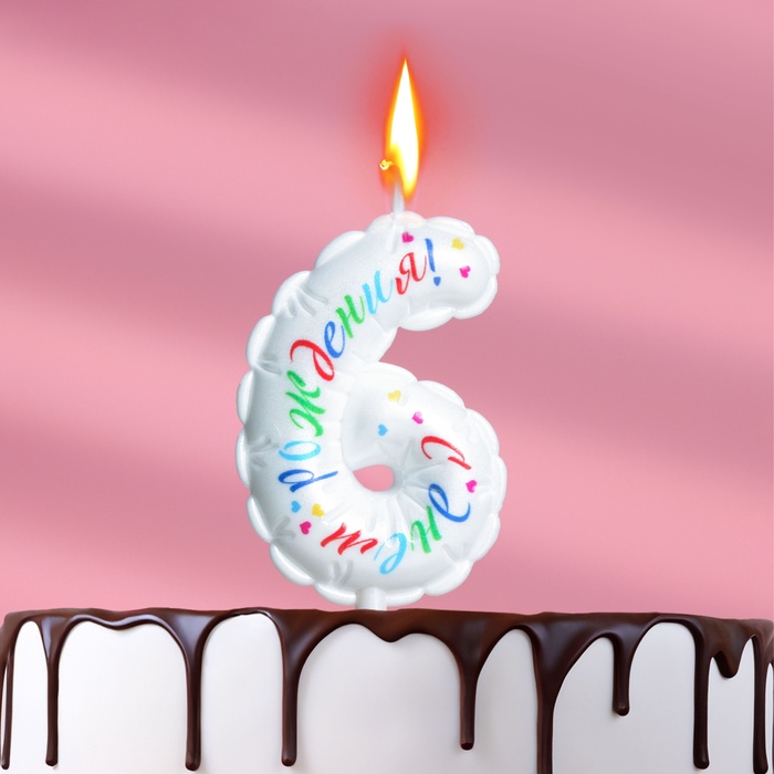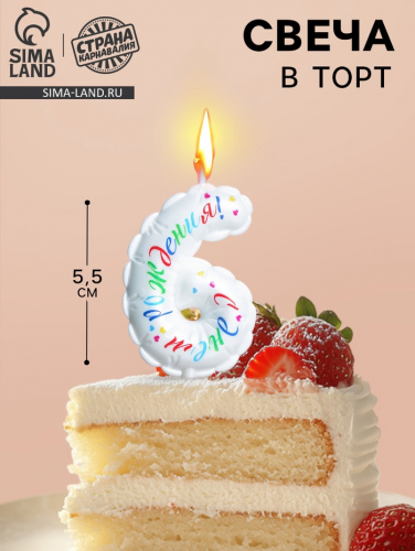 Свеча в торт «Воздушная», цифра 6, 5.5 см, белая