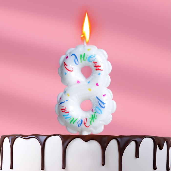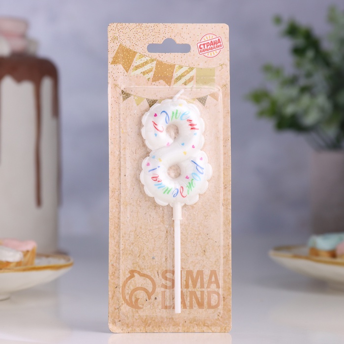 Свеча в торт «Воздушная», цифра 8, 5.5 см, белая