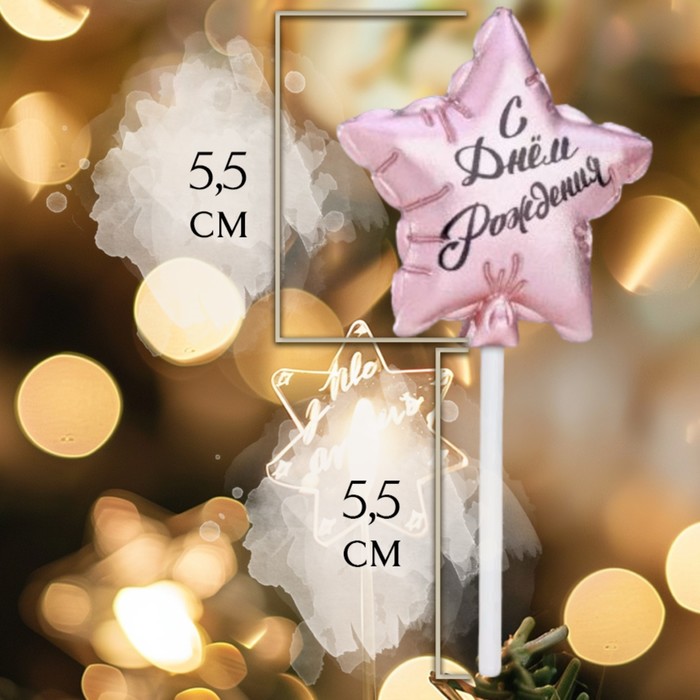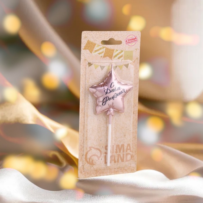 Свеча в торт «Воздушный шарик. Звезда», 5.5 см, розовое золото