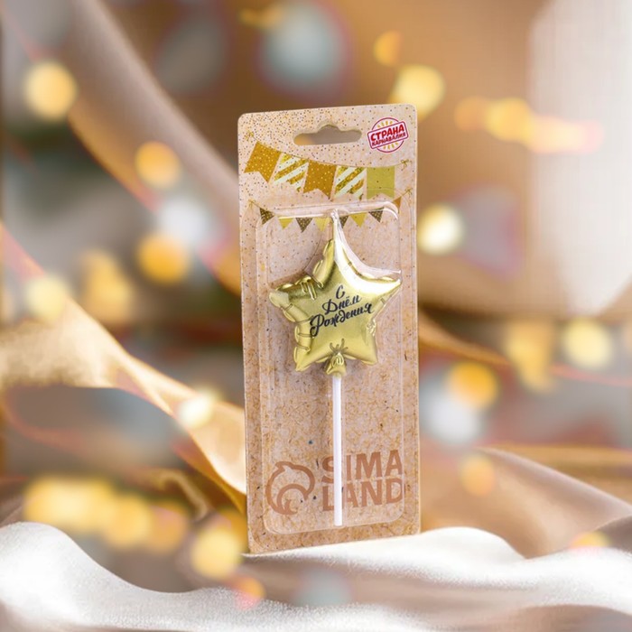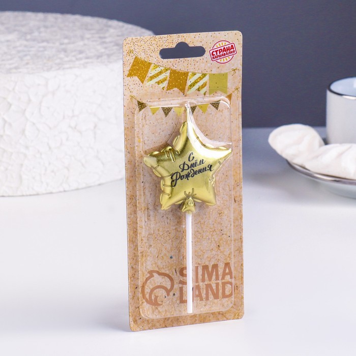 Свеча в торт «Воздушный шарик. Звезда», 5.5 см, золотая