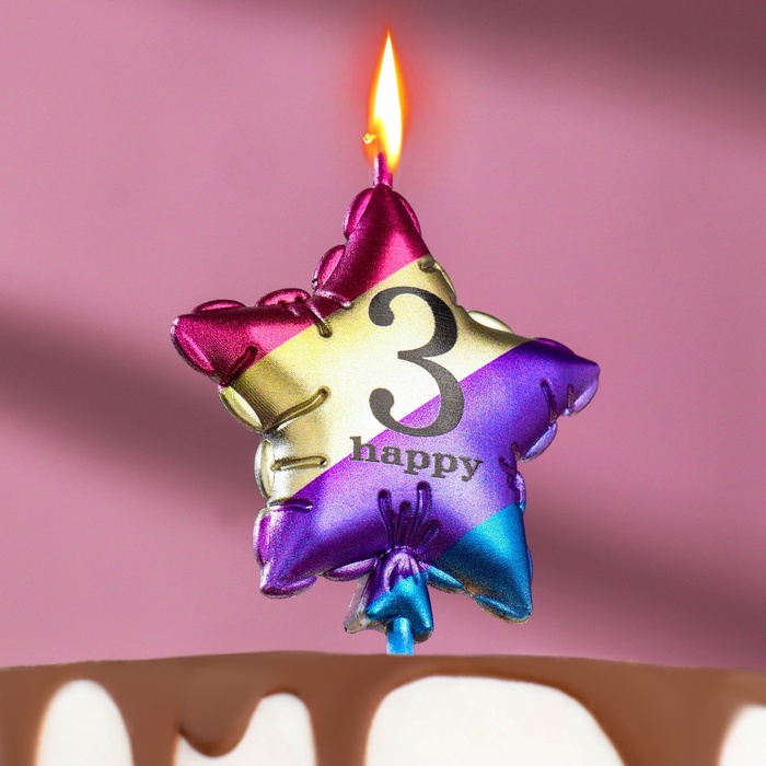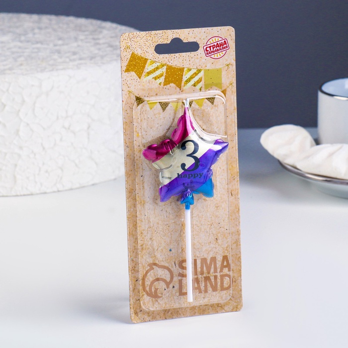 Свеча в торт «Воздушный шарик. Звезда», цифра 3, 5.5 см, разноцветная