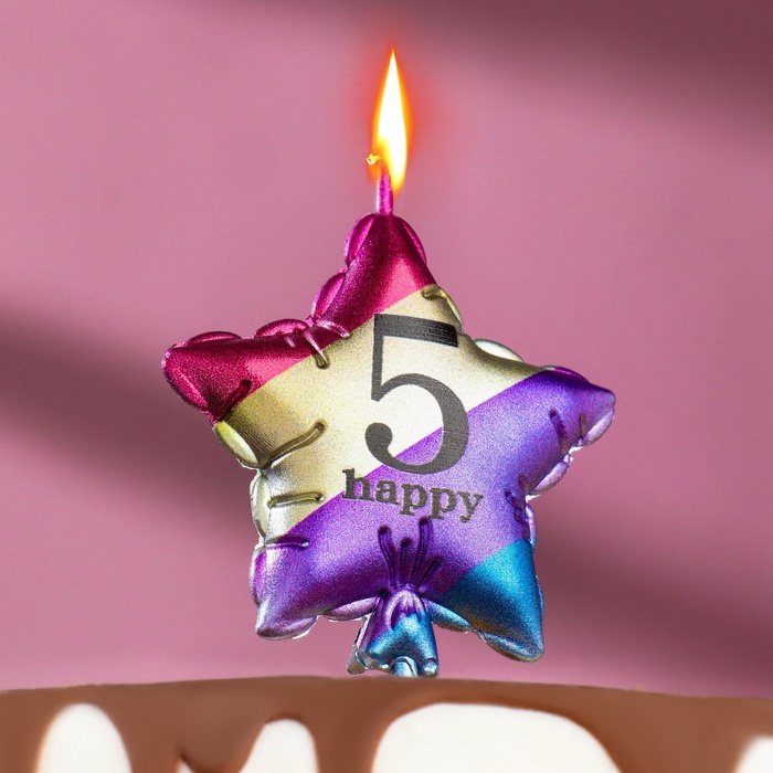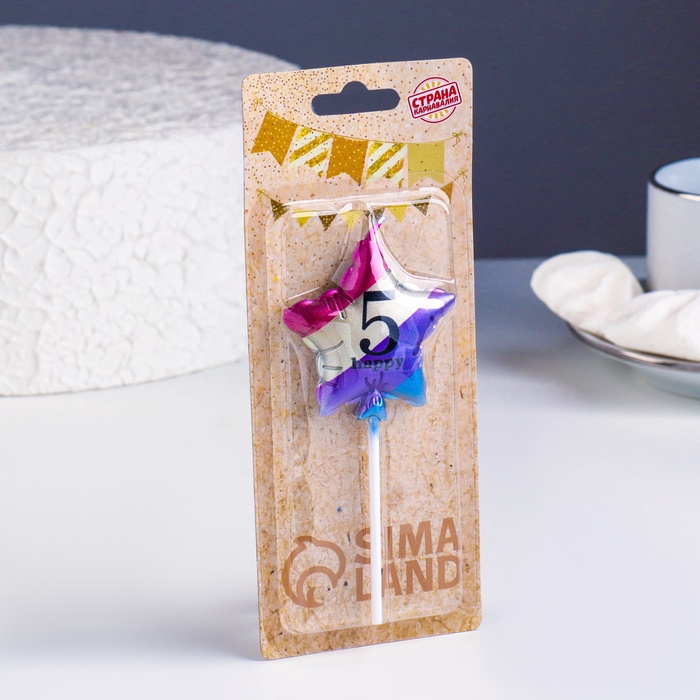 Свеча в торт «Воздушный шарик. Звезда», цифра 5, 5.5 см, разноцветная