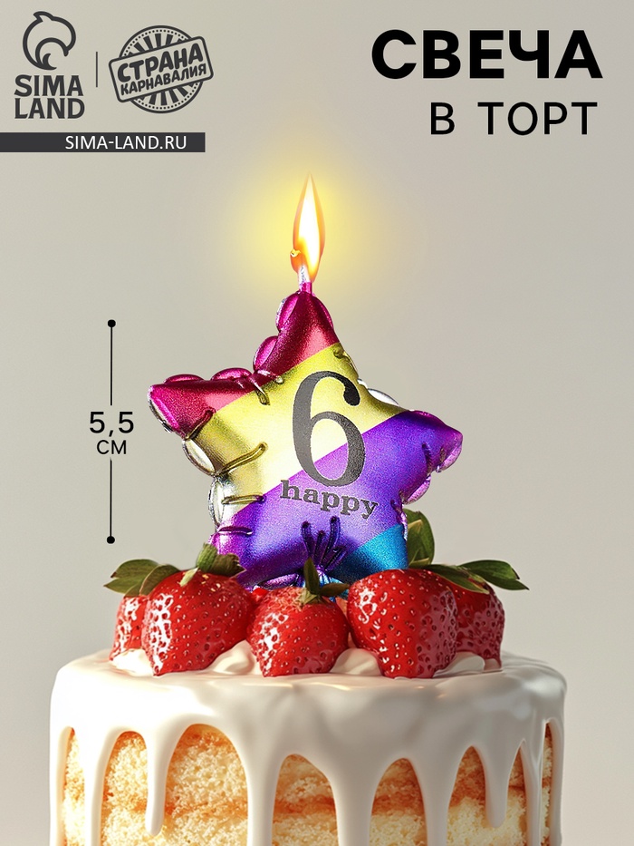 Свеча в торт «Воздушный шарик. Звезда», цифра 6, 5.5 см, разноцветная
