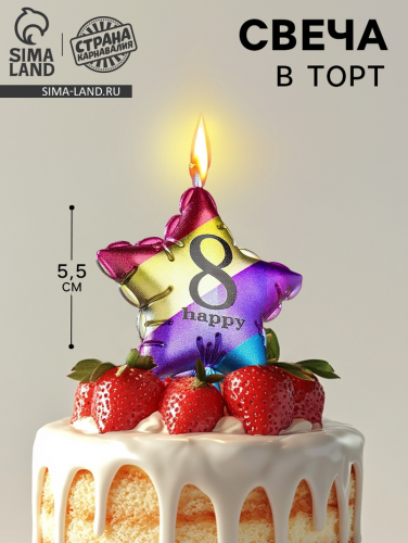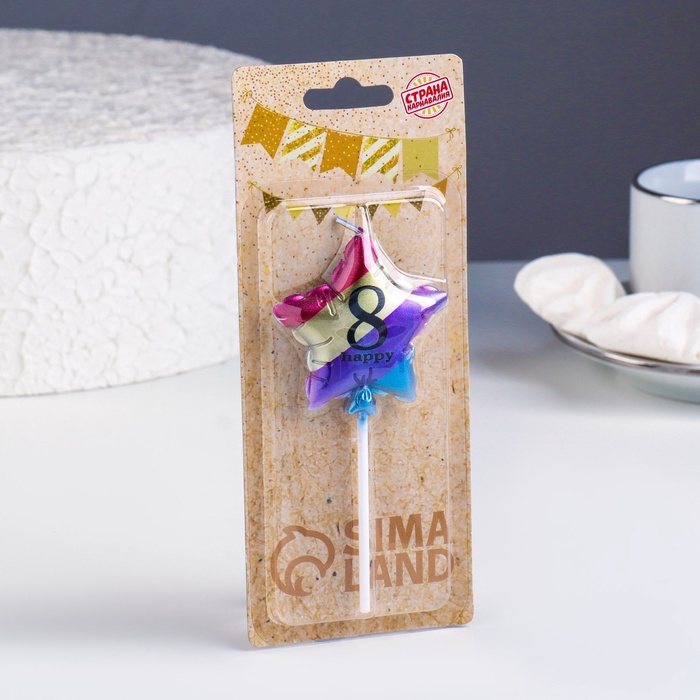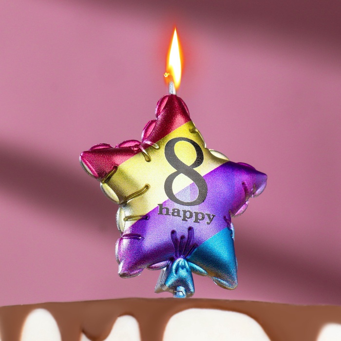 Свеча в торт «Воздушный шарик. Звезда», цифра 8, 5.5 см, разноцветная